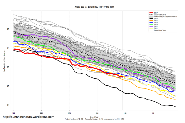Sea Ice Extent (Global Antarctic and Arctic) – Day 139 – 2017