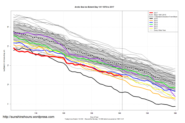 Sea Ice Extent (Global Antarctic and Arctic) – Day 141 – 2017