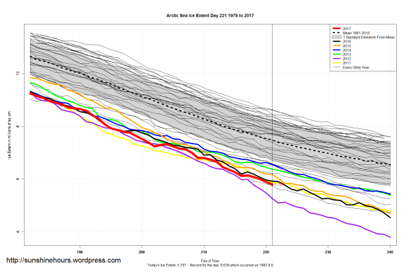 Sea Ice Extent (Global Antarctic and Arctic) – Day 221 – 2017