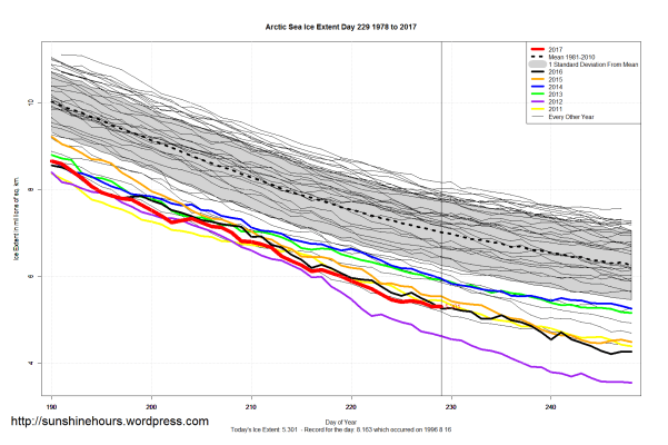 Sea Ice Extent (Global Antarctic and Arctic) – Day 229 – 2017