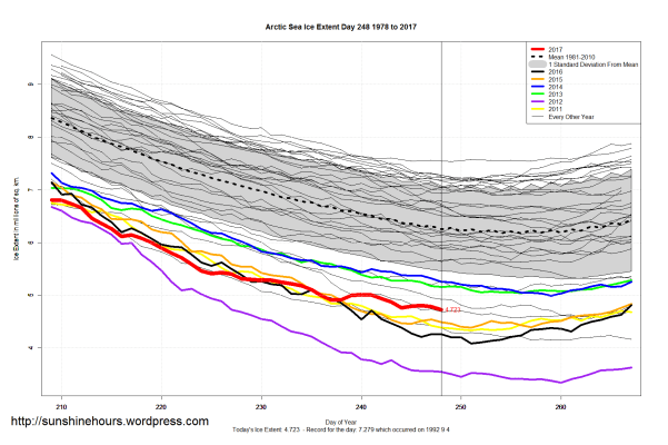 Sea Ice Extent (Global Antarctic and Arctic) – Day 248 – 2017