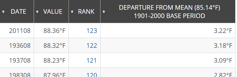 NOAA August 2017 – It Was Cold – 30th out of 123 Maximum Temperature
