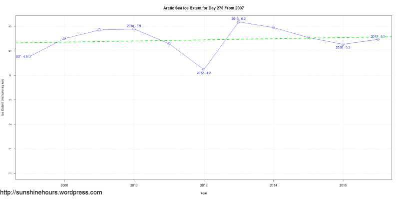 Sea Ice Extent (Global Antarctic and Arctic) – Day 278 – 2017