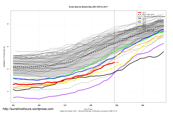 Sea Ice Extent (Global Antarctic and Arctic) – Day 289 – 2017