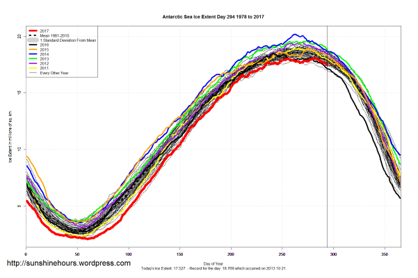 Sea Ice Extent (Global Antarctic and Arctic) – Day 294 – 2017
