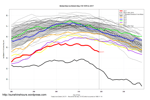 Sea Ice Extent (Global Antarctic and Arctic) – Day 319 – 2017