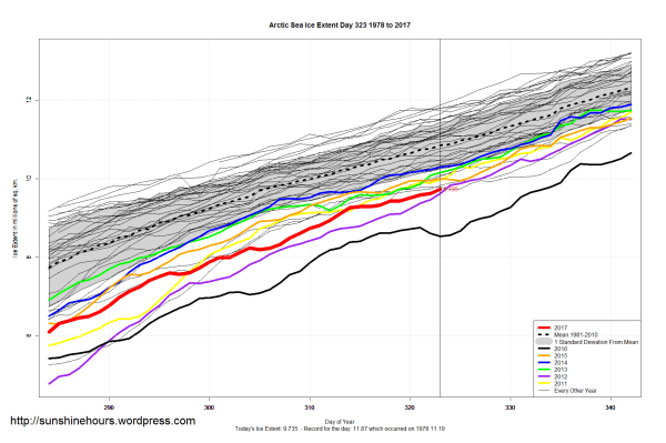 Sea Ice Extent (Global Antarctic and Arctic) – Day 323 – 2017