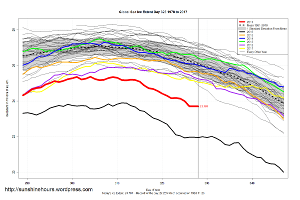 Sea Ice Extent (Global Antarctic and Arctic) – Day 328 – 2017