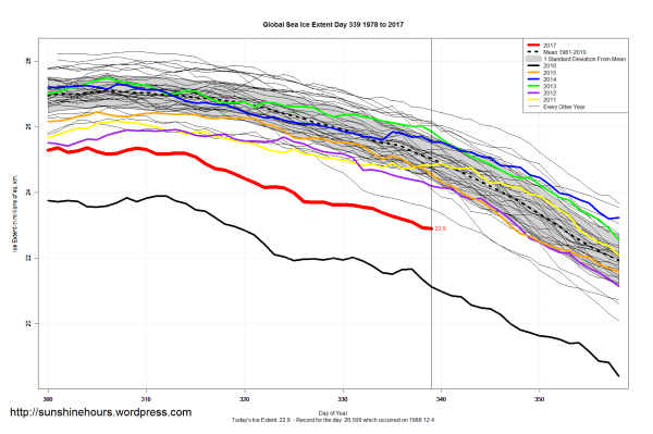 Sea Ice Extent (Global Antarctic and Arctic) – Day 339 – 2017