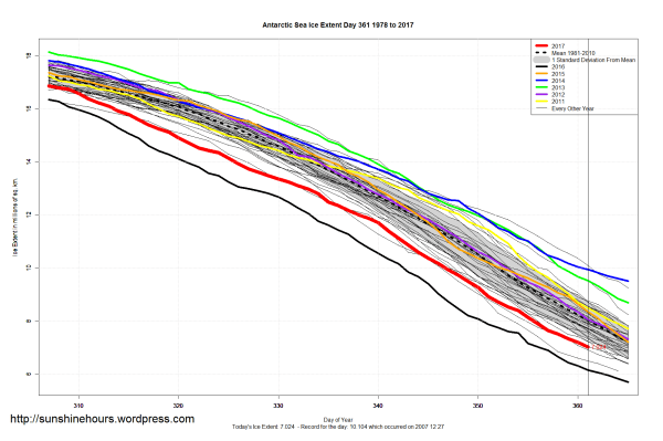 Sea Ice Extent (Global Antarctic and Arctic) – Day 361 – 2017