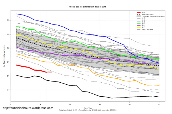 Sea Ice Extent (Global Antarctic and Arctic) – Day 6 – 2018