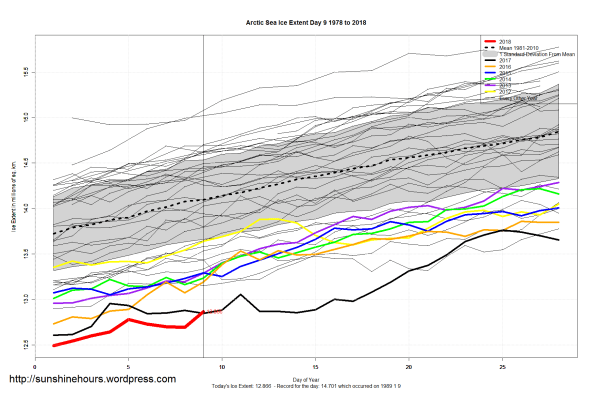 Sea Ice Extent (Global Antarctic and Arctic) – Day 9 – 2018