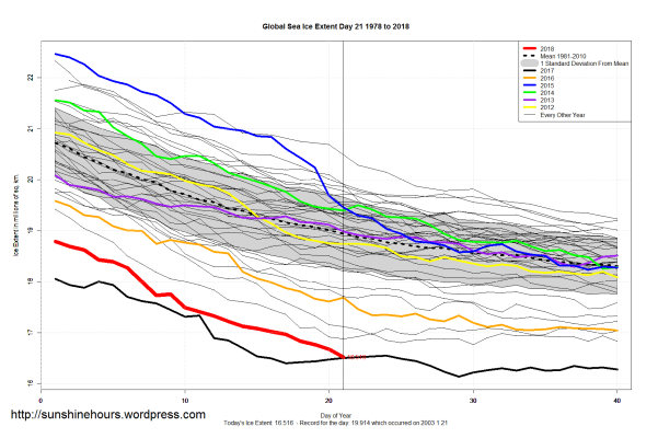 Sea Ice Extent (Global Antarctic and Arctic) – Day 21 – 2018