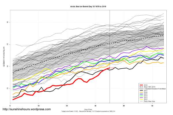Sea Ice Extent (Global Antarctic and Arctic) – Day 35 – 2018