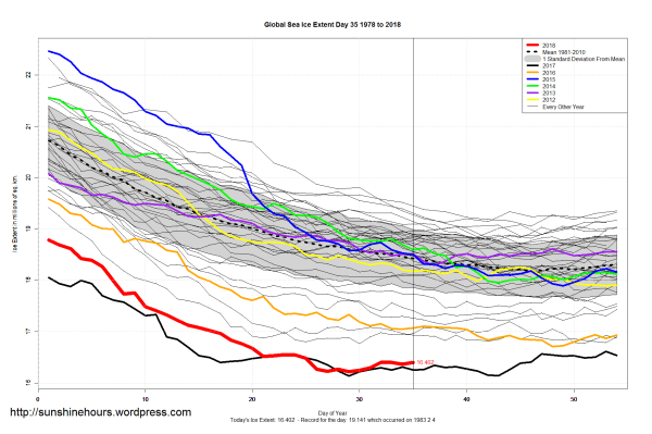Sea Ice Extent (Global Antarctic and Arctic) – Day 35 – 2018