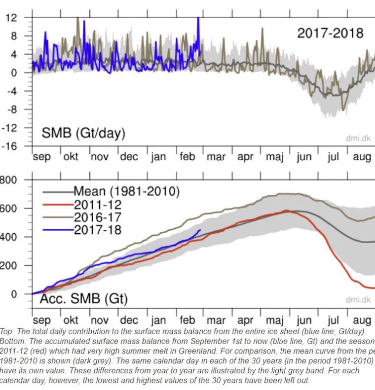 Greenland added some 12 gigatonnes of snow and ice on February 24 alone.