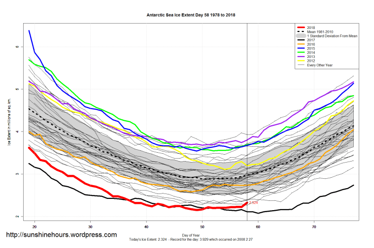 2 thoughts on “Sea Ice Extent (Global Antarctic and Arctic) – Day 58 – 2018