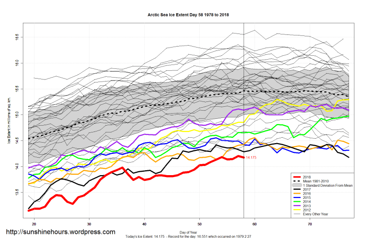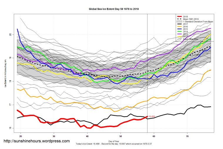 Sea Ice Extent (Global Antarctic and Arctic) – Day 58 – 2018