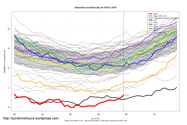 Sea Ice Extent (Global Antarctic and Arctic) – Day 59 – 2018