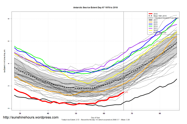 Sea Ice Extent (Global Antarctic and Arctic) – Day 67 – 2018