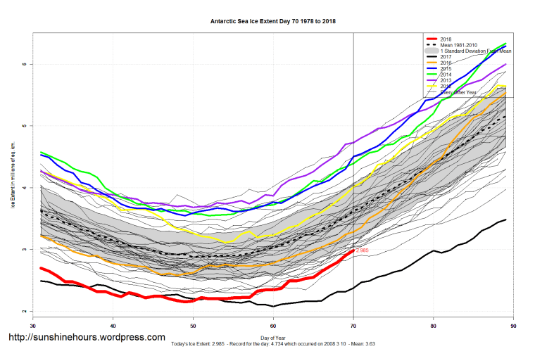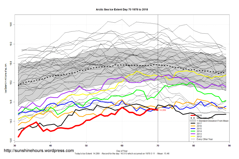 Sea Ice Extent (Global Antarctic and Arctic) – Day 70 – 2018 Published on March 12, 2018March 12, 2018 by sunshinehours1 South / North Share this: Click to share on X (Opens in new window) X Click to share on Facebook (Opens in new window) Facebook Like Loading... Related