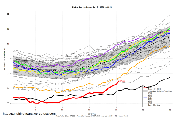 Sea Ice Extent (Global Antarctic and Arctic) – Day 71 – 2018