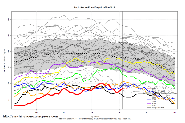 Sea Ice Extent (Global Antarctic and Arctic) – Day 81 – 2018
