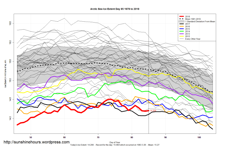 If the trend continues it will certainly favor the Arctic ice in the September minimum. This year could be another year of “recovery” like 2013.