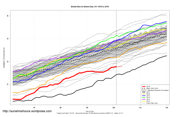 Sea Ice Extent (Global Antarctic and Arctic) – Day 101 – 2018