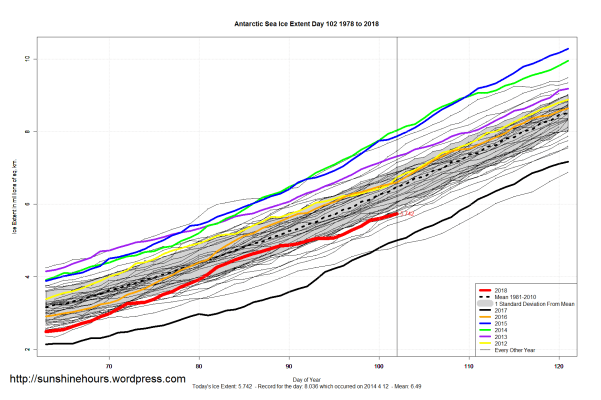 Sea Ice Extent (Global Antarctic and Arctic) – Day 102 – 2018