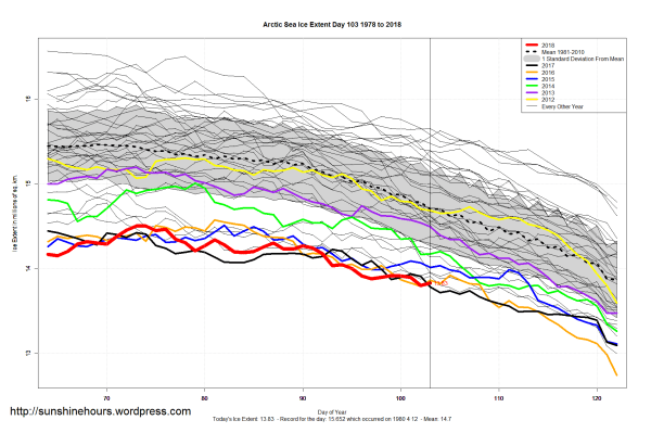 Sea Ice Extent (Global Antarctic and Arctic) – Day 103 – 2018