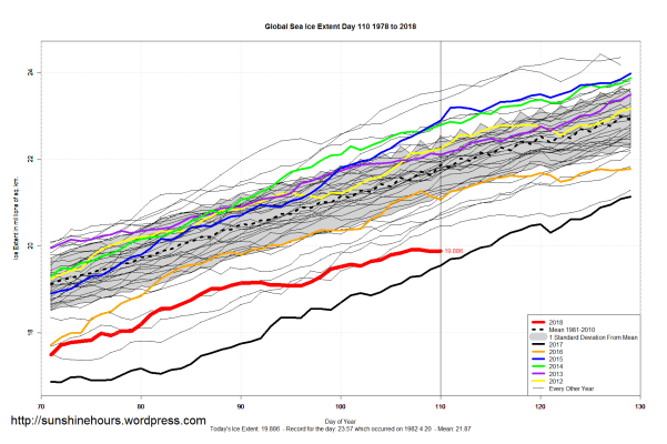 Sea Ice Extent (Global Antarctic and Arctic) – Day 110 – 2018