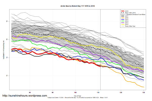 Sea Ice Extent (Global Antarctic and Arctic) – Day 111 – 2018
