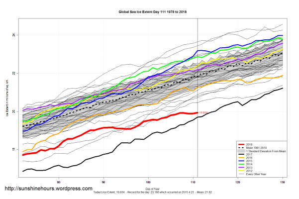 Sea Ice Extent (Global Antarctic and Arctic) – Day 111 – 2018