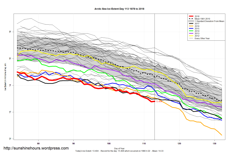One thought on “Sea Ice Extent (Global Antarctic and Arctic) – Day 113 – 2018