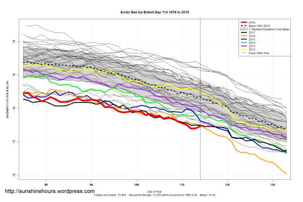 Sea Ice Extent (Global Antarctic and Arctic) – Day 114 – 2018