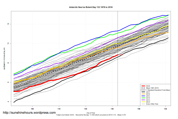 Sea Ice Extent (Global Antarctic and Arctic) – Day 132 – 2018
