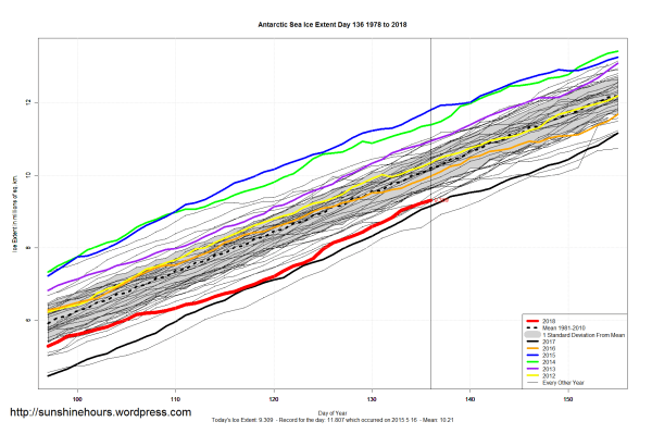 Sea Ice Extent (Global Antarctic and Arctic) – Day 136 – 2018