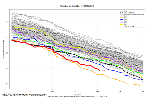 Sea Ice Extent (Global Antarctic and Arctic) – Day 141 – 2018