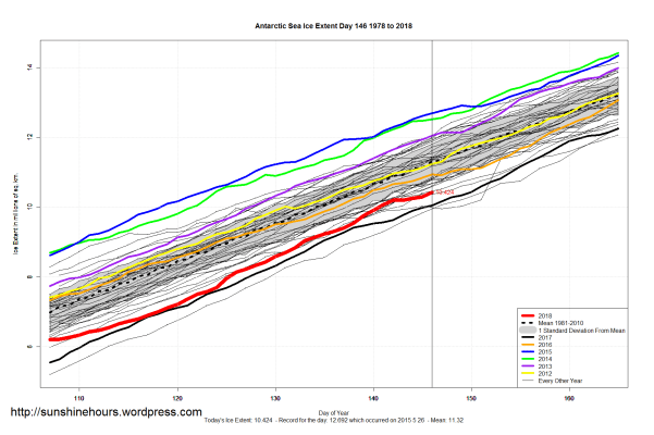 Sea Ice Extent (Global Antarctic and Arctic) – Day 146 – 2018
