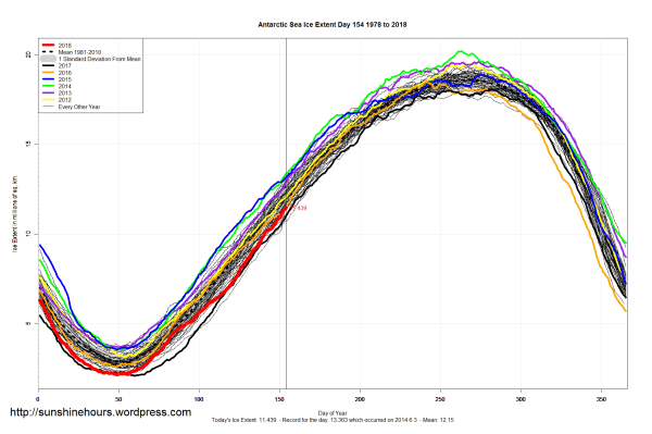 Sea Ice Extent (Global Antarctic and Arctic) – Day 154 – 2018