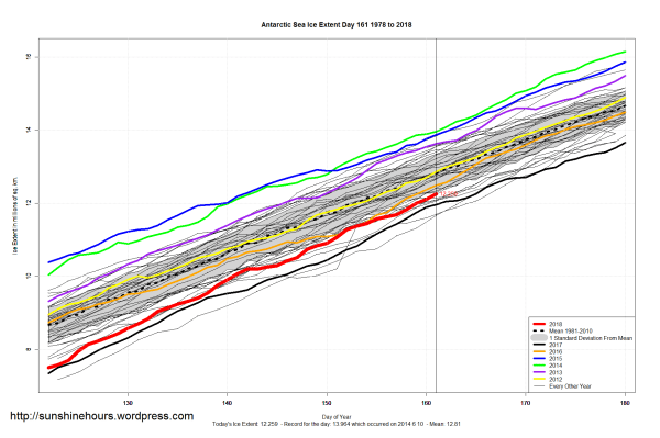 Sea Ice Extent (Global Antarctic and Arctic) – Day 161 – 2018