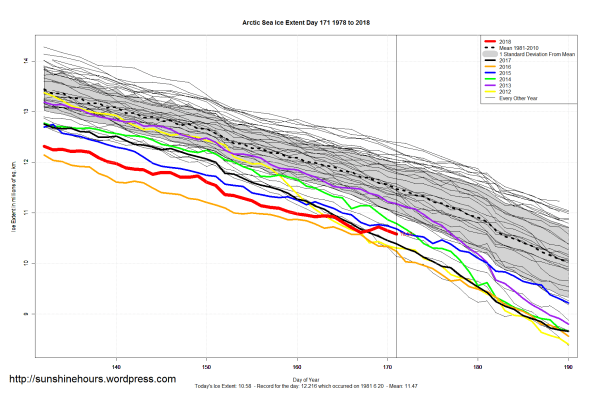 Sea Ice Extent (Global Antarctic and Arctic) – Day 171 – 2018
