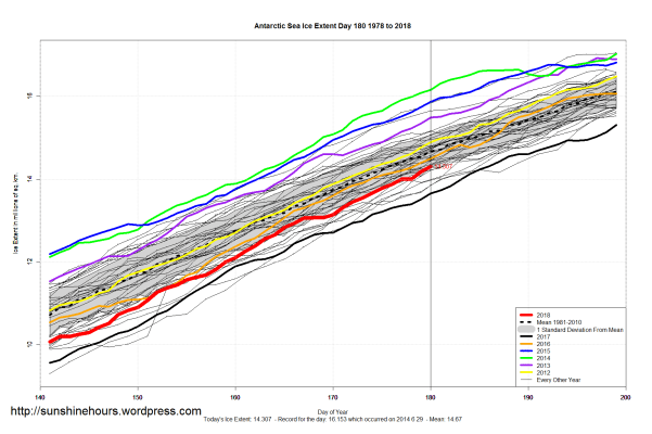 Sea Ice Extent (Global Antarctic and Arctic) – Day 180 – 2018