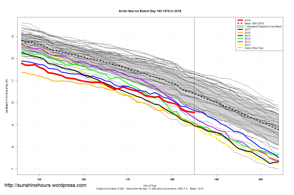 Sea Ice Extent (Global Antarctic and Arctic) – Day 185 – 2018