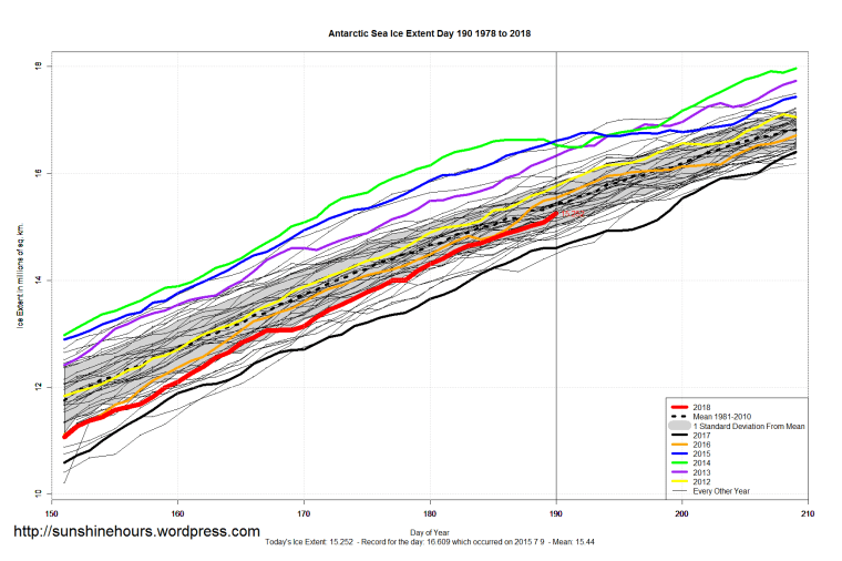 Sea Ice Extent (Global Antarctic and Arctic) – Day 190 – 2018