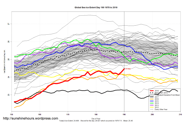 Sea Ice Extent (Global Antarctic and Arctic) – Day 190 – 2018