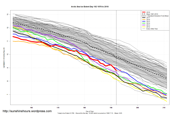 Sea Ice Extent (Global Antarctic and Arctic) – Day 192 – 2018