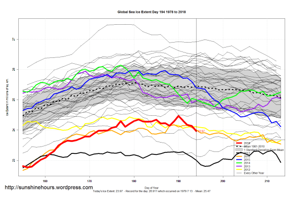 Sea Ice Extent (Global Antarctic and Arctic) – Day 194 – 2018