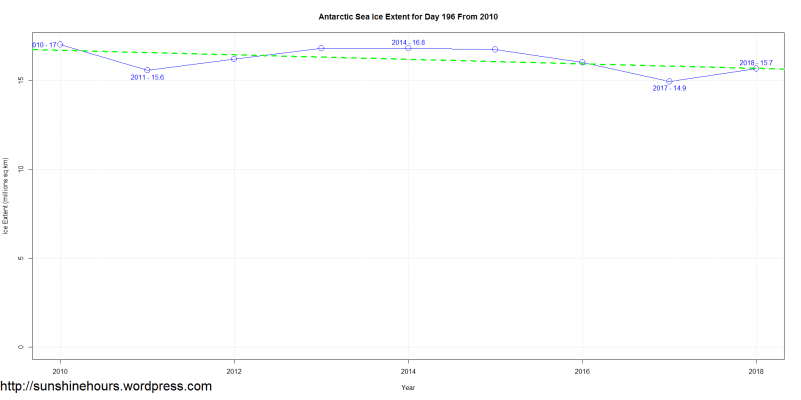 Sea Ice Extent (Global Antarctic and Arctic) – Day 196 – 2018